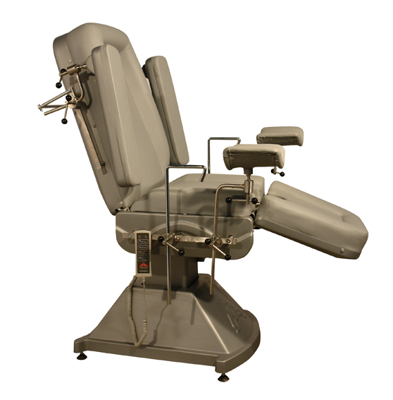 Кресло разработано и изготовлено для осуществления гинекологического осмотра и вмешательства. Одновременно, кресло может использоваться для урологических и небольших хирургических вмешательств. Высота кресла может регулироваться электроприводом. Кресло беспроблемно работает при напряжении 220/380 V 50 Hz и обладает устройством, стабилизирующим изменения напряжения сети. Предприняты все меры предосторожности для обеспечения электрической безопасности пациента и пользователя, части кресла, напрямую контактирующие с пациентом, работают при низком вольтаже (24V). Движения стола контролируются ручным пультом управления. Кресло легко в использовании. Основной корпус кресла (шасси) изготовлен с защитой от опрокидывания, все металлические детали покрыты антикоррозийным покрытием и ABS пластиком. Кресло состоит из трех секций: спинки, сиденья и ножной секции, каждая из которых контролируется отдельными моторами. Ножная секция при помощи электрической команды приводиться в действие и устанавливается в позиции для проведения ультразвукового исследования. По бокам сиденья и по бокам спинки имеются детали из нержавеющего материала для крепления аксессуаров. Изменение угла наклона спинки обеспечивается электроприводом. За спинкой кресла находится вешалка для бумажного рулона. Обивка кресла легко поддается чистке, особенно с использованием широко распространенных дезинфицирующих средств. У кресла имеются шарнирные ножки, обеспечивающие устойчивость. Срок гарантии составляет 2 (два) года. По истечении гарантийного срока, на протяжении 10 лет обеспечивается платное предоставление запасных частей и технического обслуживания. Производитель располагает сертификатами ISO 9001:2008 и ISO 13485:2003. Продукция имеет СЕ сертификат.